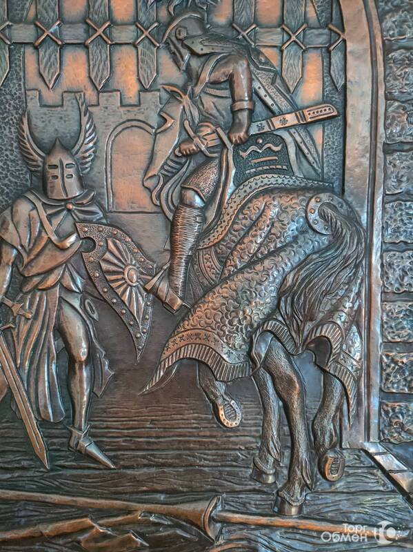 Чеканка . " Айвенго " vers.2. Элемент триптиха .Чеканка по меди. размер 47 x 67 по рамке, рамка , задник, задник временно снят ,для проверки на подлинность. В том, что это крафтовое изделие , а не гальванопластика. Цена высокая договорная , обусловлена высочайшим качеством проработки мельчайших деталей на ювелирном уровне . Все формы оплаты , бартер . Отправлю по России СДЭК или Деловые Линии до дверей покупателя в жестком ящике. Здесь же принимаю заказы на изготовление панно с чеканкой по Вашим пожеланиям, теме , сюжету.. Заказывайте эсклюзивные вещи авторской работы заранее..срок изготовления от 1 месяца.