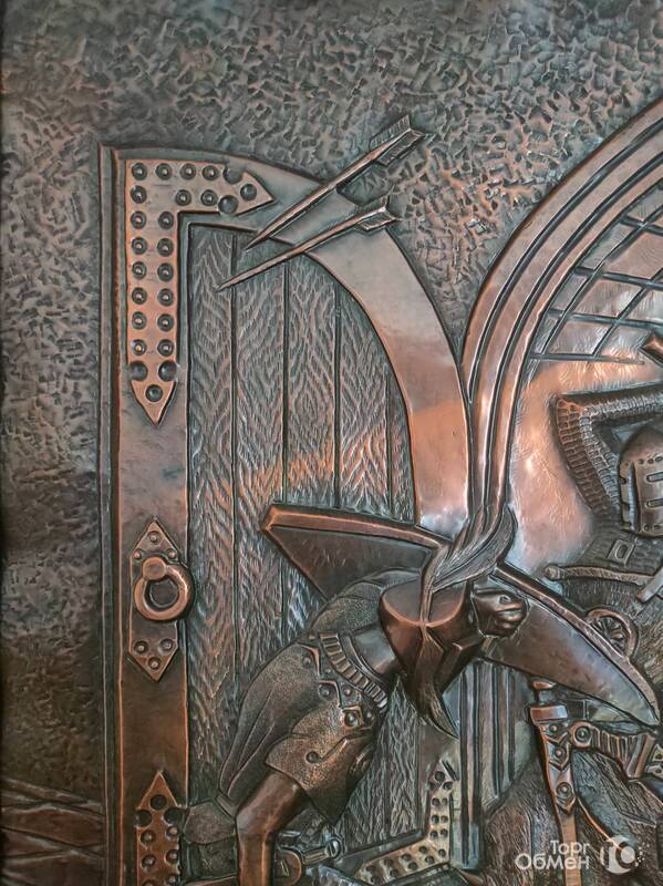 Чеканка . " Айвенго ". vers.1 .Элемент триптиха. Чеканка по меди. размер 46 x 65 по рамке, рамка , задник, задник временно снят ,для проверки на подлинность. В том, что это крафтовое изделие , а не гальванопластика. Цена высокая договорная , обусловлена высочайшим качеством проработки мельчайших деталей на ювелирном уровне . Все формы оплаты , бартер . Отправлю по России СДЭК или Деловые Линии до дверей покупателя в жестком ящике. Здесь же принимаю заказы на изготовление панно с чеканкой по Вашим пожеланиям, теме , сюжету.. Заказывайте эсклюзивные вещи авторской работы заранее..срок изготовления от 1 месяца.