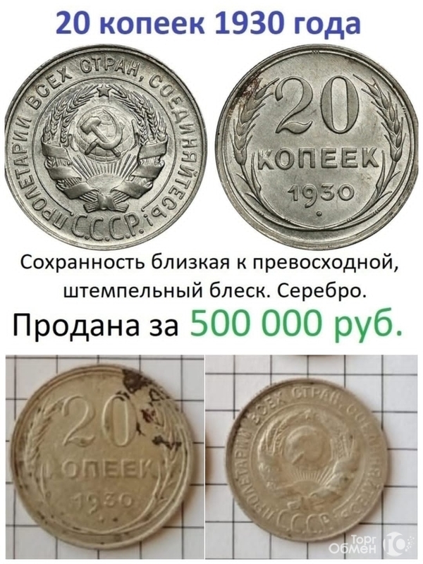 Монета серебряная 20 копеек 1930 года . Пишите в Личку. На звонки не отвечаю.