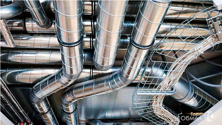 Основной частью системы вентиляции являются воздуховоды круглого и прямоугольного сечения. По ним в помещение подается свежий воздух и удаляется загрязненный. Для изготовления воздуховодов чаще всего используется оцинкованная или нержавеющая сталь с толщиной листа от 0,5 до 1,2 мм. Для не больших помещений часто используются пластиковые воздуховоды.